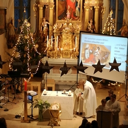 Am Christtag feierte Vikar Norbert Glaser mit der Pfarrgemeinde das Hochfest der Geburt Christi. Das Weihnachtsevangelium und seine Bedeutung für uns heute standen im Mittelpunkt des Festgottesdienstes, der vom Kirchenchor musikalisch gestaltet wurde. Unter der Leitung von Organistin Magdalena Moser wurde neben traditionellen Weihnachtsliedern eine Messe von Karl-Bernhardin Kropf gesungen, die in einstimmiger Fassung - Gotteslob 715 – von den Gläubigen mitzusingen war. So erlebten wir in unserer weihnachtlich strahlenden Kirche einen wahrlich festlichen Weihnachtsgottesdienst!