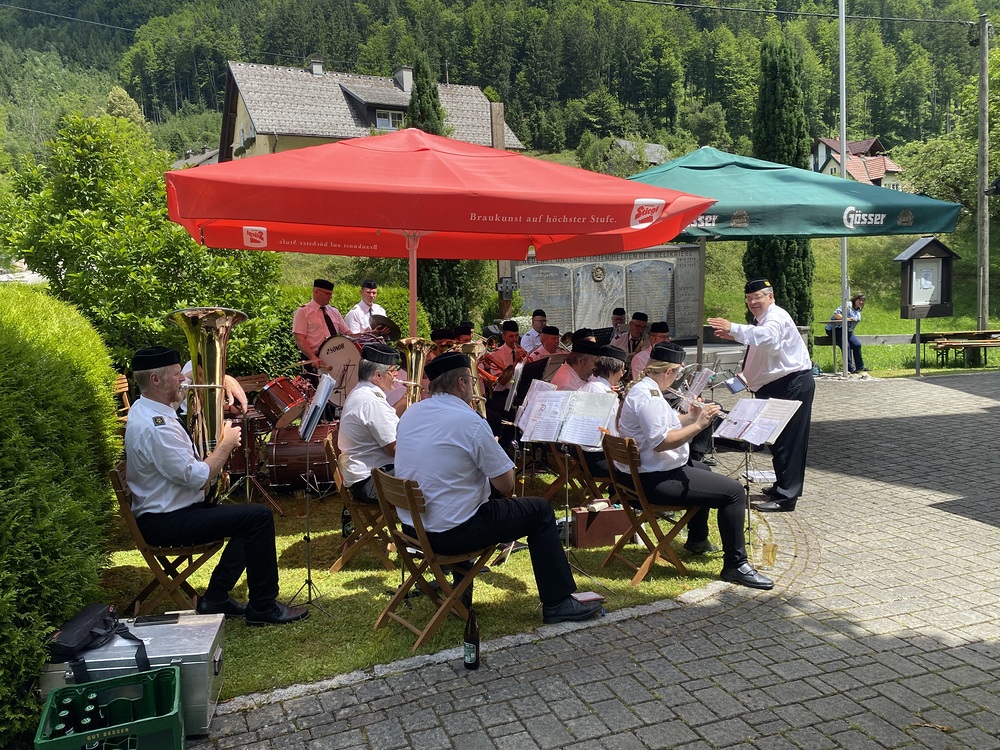 Pater Thomas feierte mit uns das Hochamt um 10:30 Uhr. Geige, Orgel und Trompeten brachten uns in feierliche Stimmung. Nach dem Gottesdienst spielte die Bergknappenkapelle Unterlaussa. Es gab alles von Schnitzel bis Schilcher Charmant.